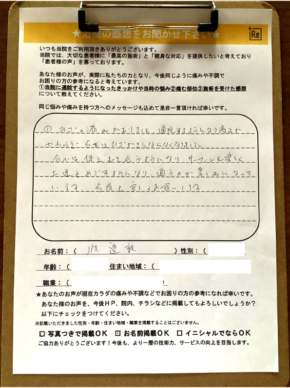このような状態を放置すると、「悪いクセ」として定着し、炎症が慢性化したり、再発しやすい状態へと進行してしまうのです。鵞足炎を根本的に改善するには、局所の負担を取り除くだけでなく、「カラダのゆがみ」「間違った動き」「悪いクセ」を見直すことが非常に重要です。