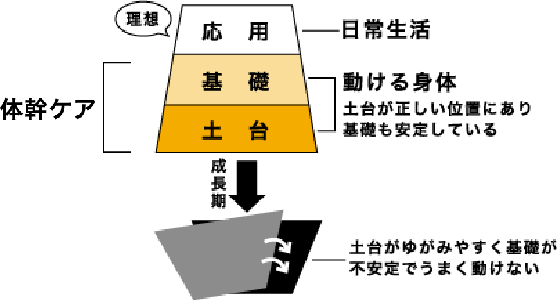 全成長期のカラダのバランスが大きく崩れる時期で、成長に合わせた体幹ケアが必要です。